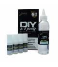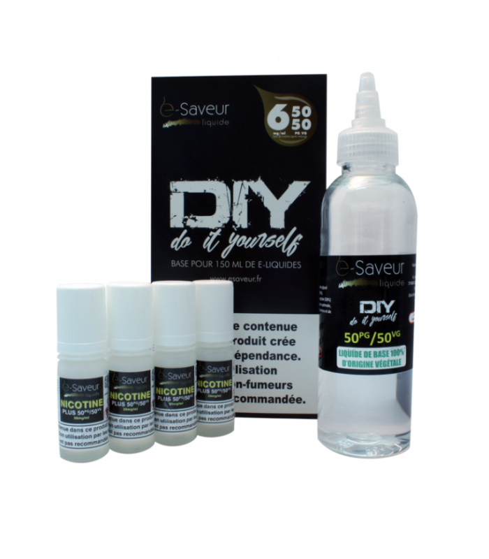 Vous retrouverez ainsi dans le pack une bouteille de 150 ml de contenance remplie avec 90 ml de base. Ajoutez simplement les quatre boosters fournis pour obtenir 130 ml de base nicotinée. De là, vous n'avez plus qu'à ajouter vos arômes favoris et votre DIY sera prêt !